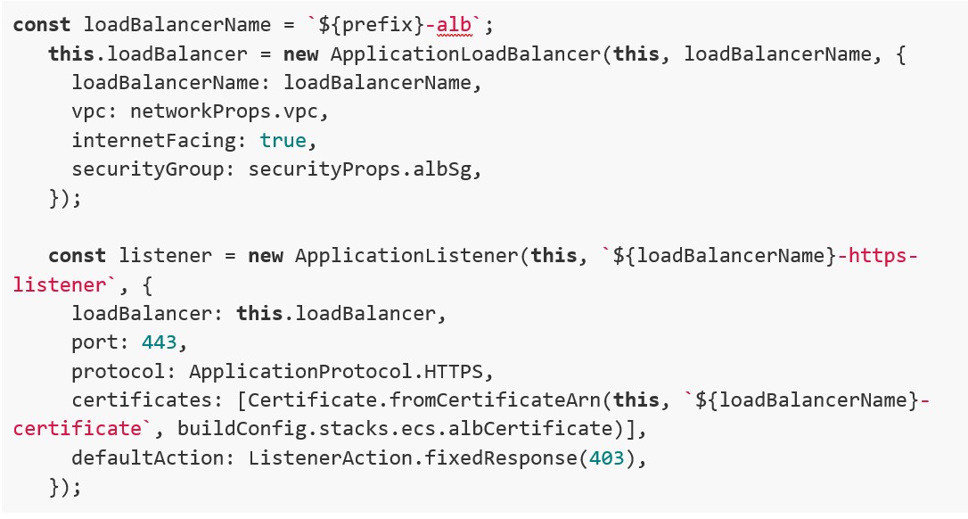 Per facilitare la configurazione, cicliamo sugli oggetti “buildConfig.stacks.ecs.services“ definiti in “cdk.json”. Questo è uno dei vantaggi maggiori di un approccio IaC, in quanto con un minimo sforzo, possiamo replicare la configurazione per tutti i servizi eliminando gli errori umani che potrebbero verificarsi eseguendo le operazioni da console o definendole una ad una. Per ogni servizio ECS è previsto un Log Group, un repository ECR ed il proprio Task Definition.