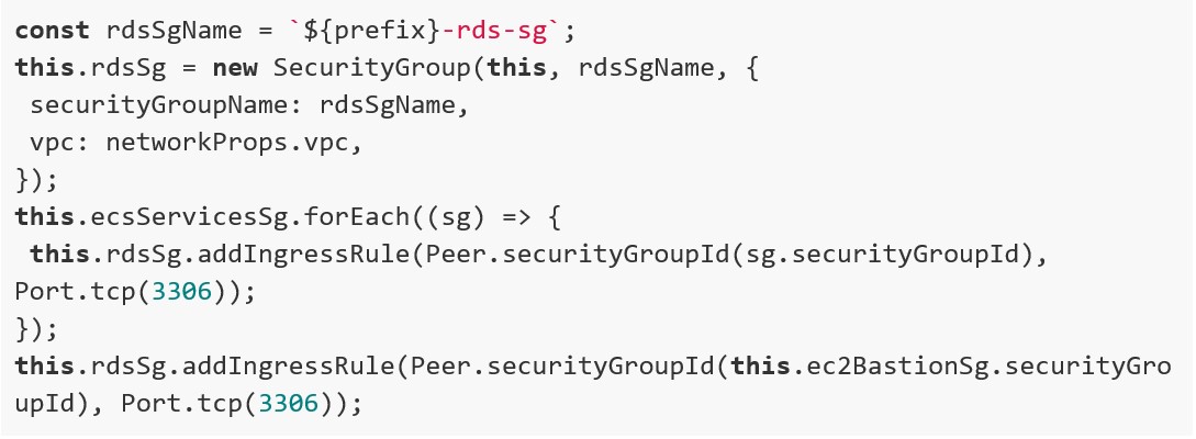 Qui ad esempio abilitiamo le richieste verso il DB solo dai servizi ECS e dall’istanza EC2 ponte.